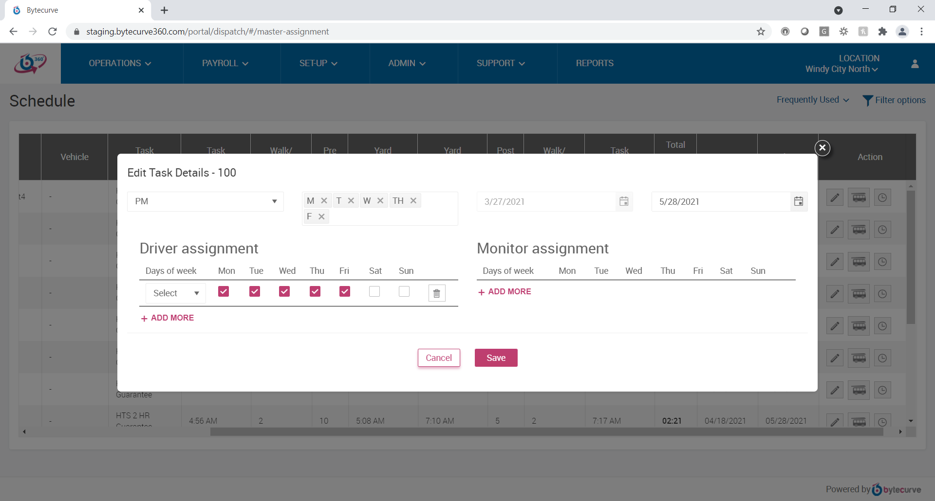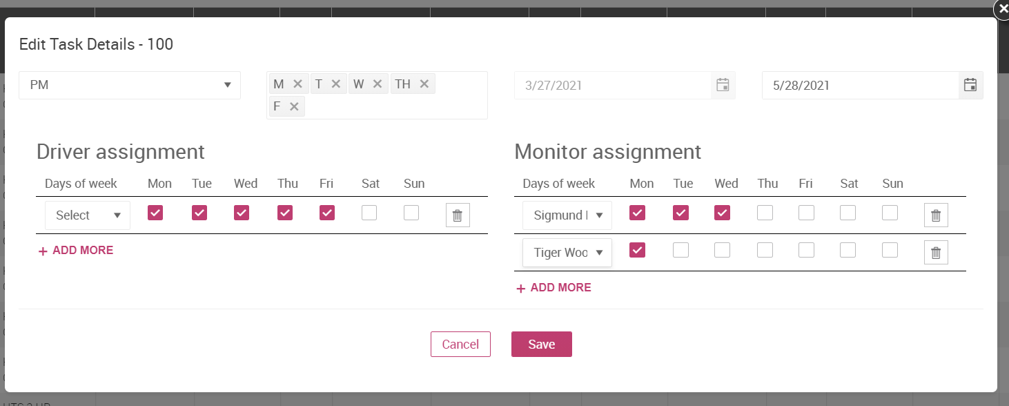 For students who need special / extra attention a bus route may include one or more additional employees traveling with the students. These employees are called Monitors or Aides. To add a monitor to a task, follow the steps given below: