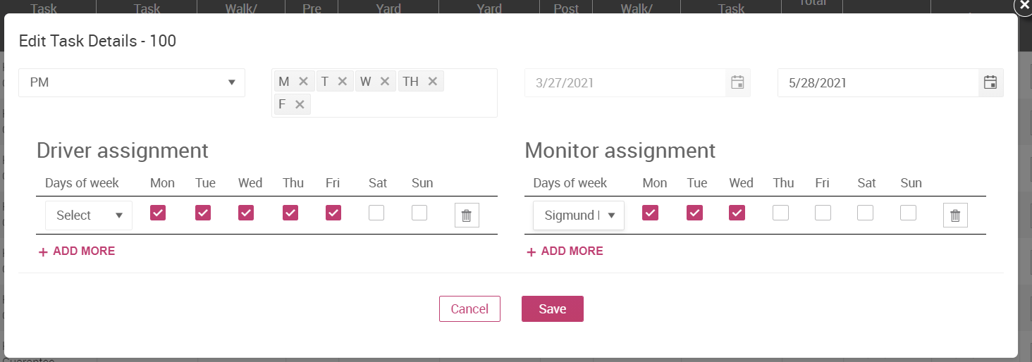 3. To add a monitor to the task, click + ADD MORE under the monitor assignment section.