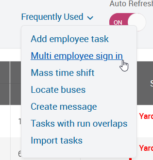 - Select ‘Frequently Used’ in the upper right-hand corner. From the drop-down menu click ‘Multi employee sign in.’