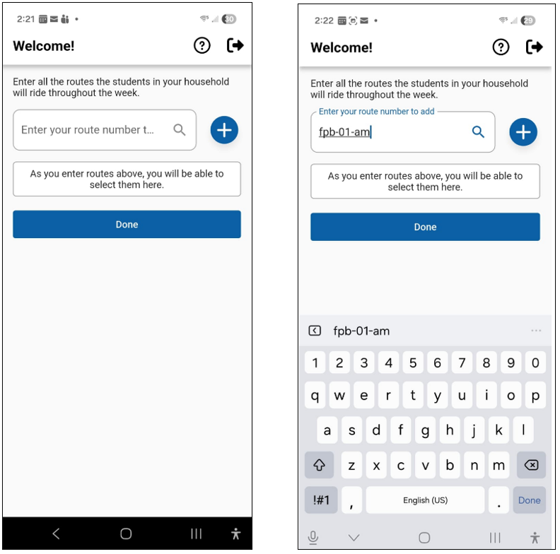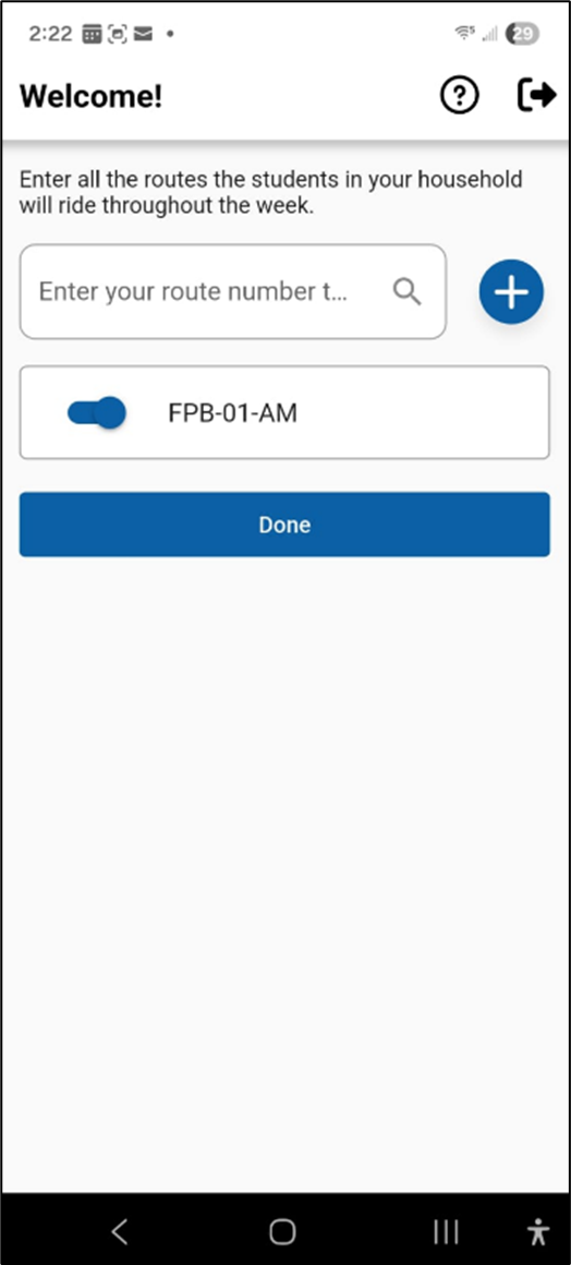 - When you tap on 'Register' you will be prompted to enter the route(s) your student(s) ride. Your school district should have provided this information to you. Based on how your district would like this to be set up, you have two options: