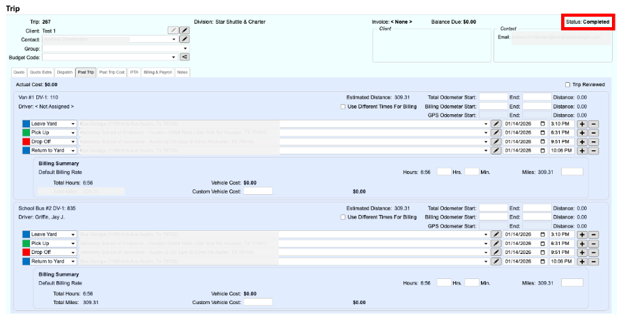 Step 7: Trip is now complete in busHive